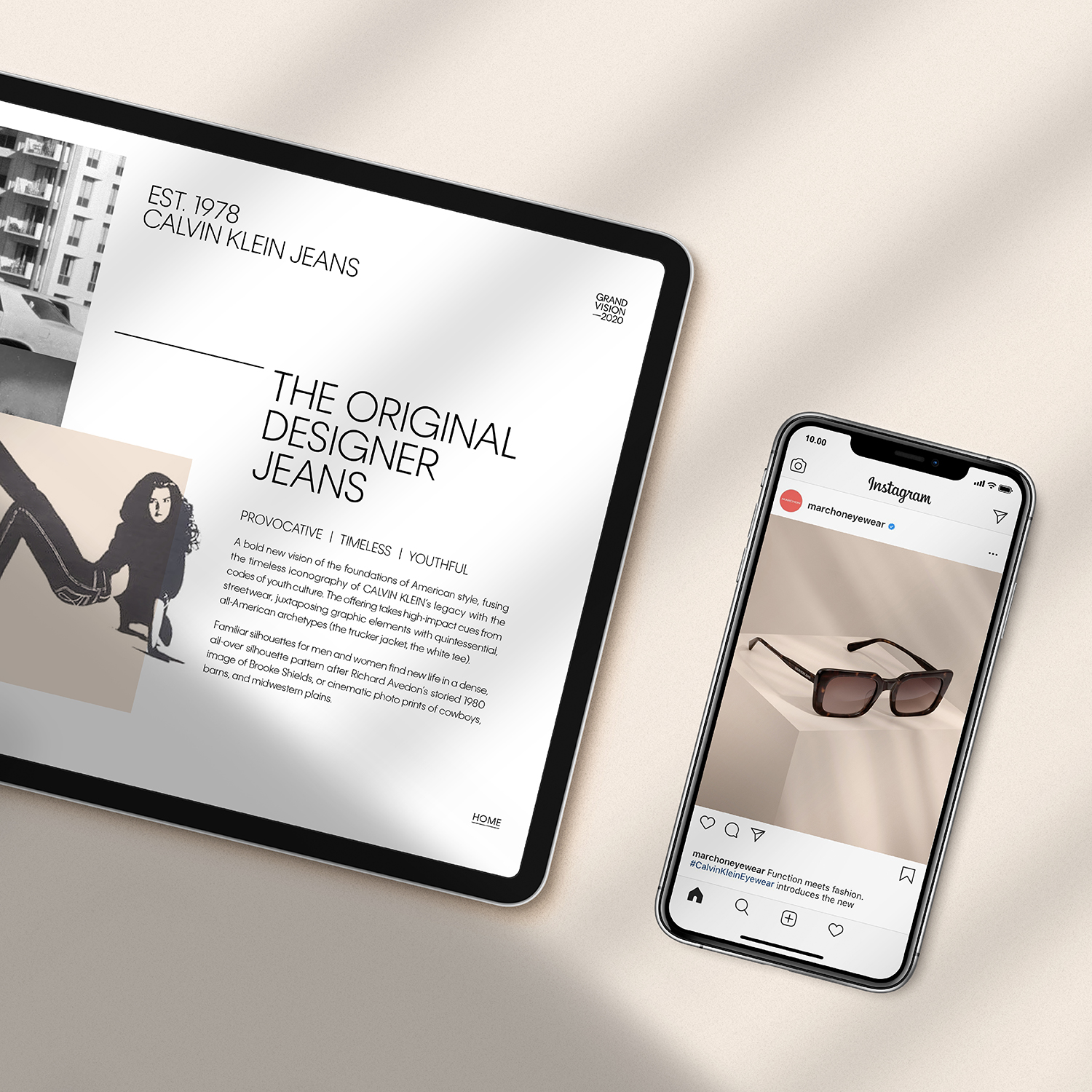 Photography, prop styling, retouching, and brochure design for Calvin Klein Jeans Eyewear.