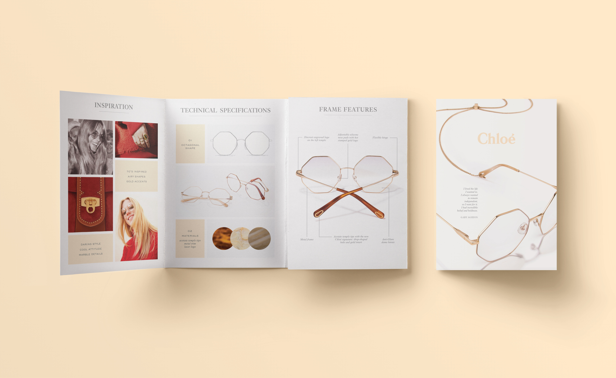 The Silmo d'Or Awards ceremony highlights the originality, innovation and quality of the optics and eyewear market. This brochure was submitted to the Silmo competition to illustrate the design features and inspiration that went into the production of Chloé's Palma frame. The frame went on to win the 2017 Silmo Award in the design category for optic frames.