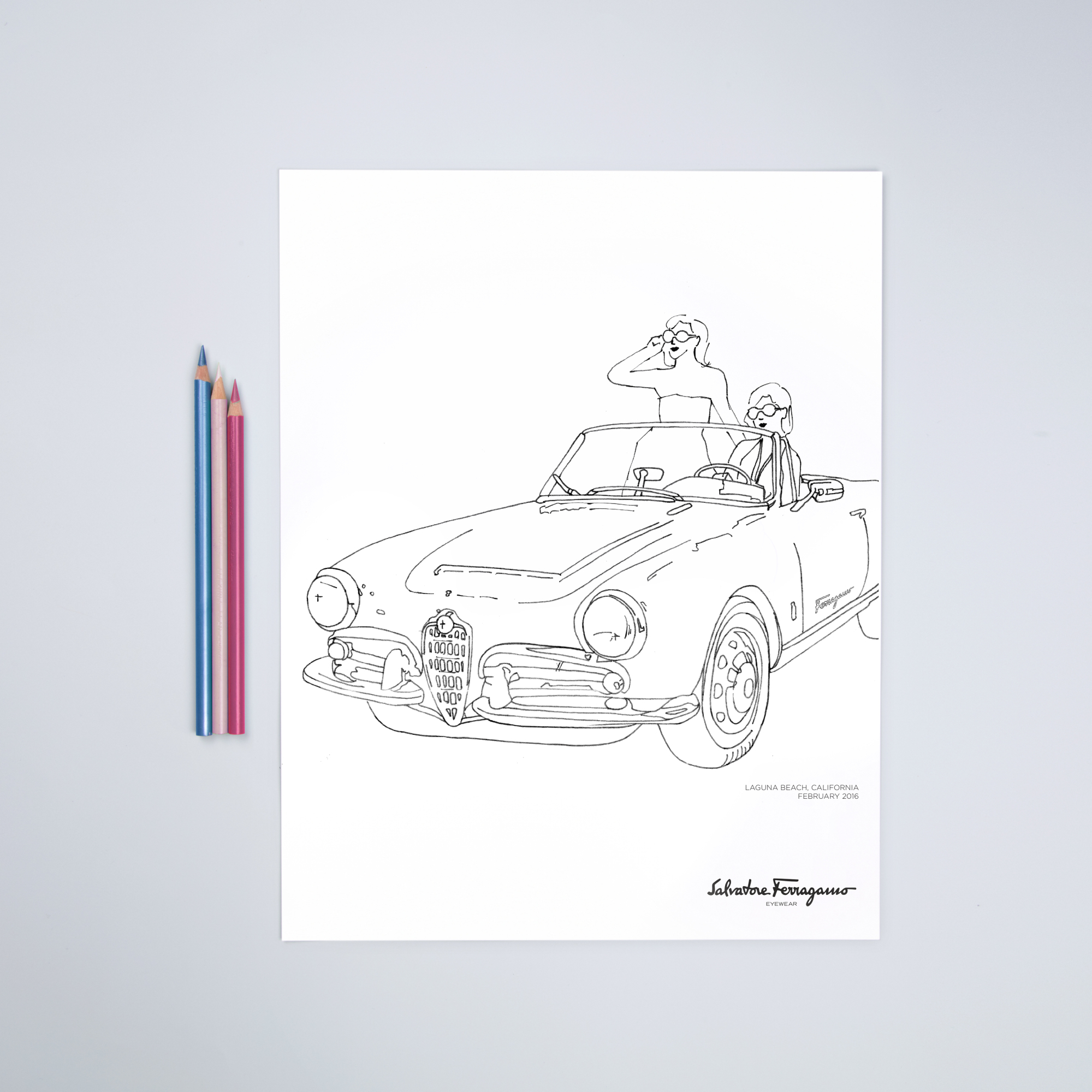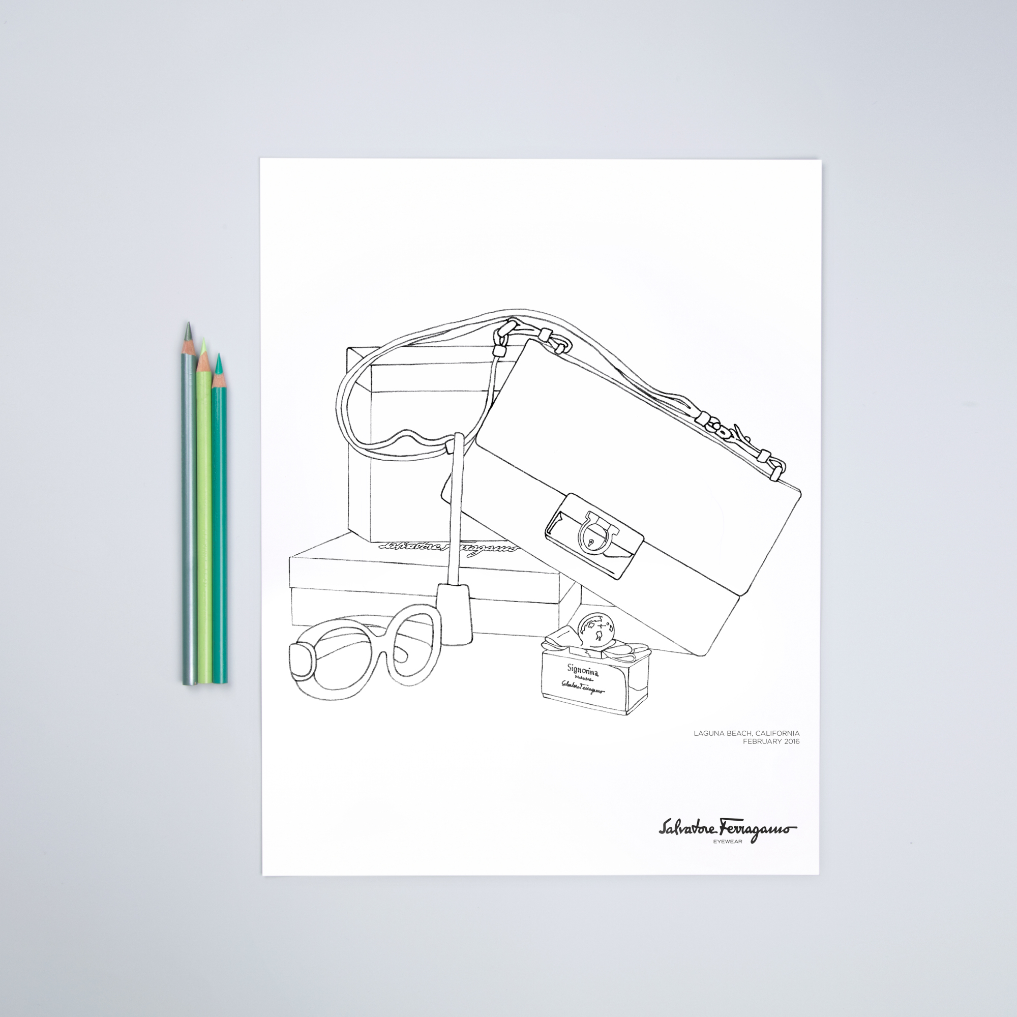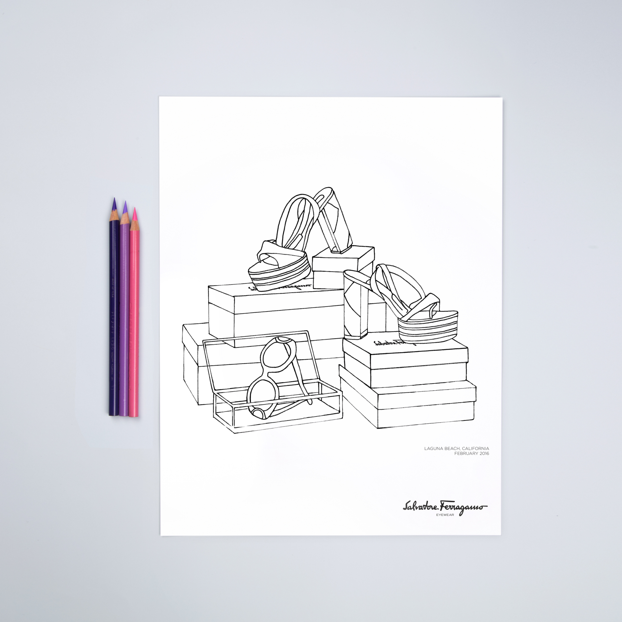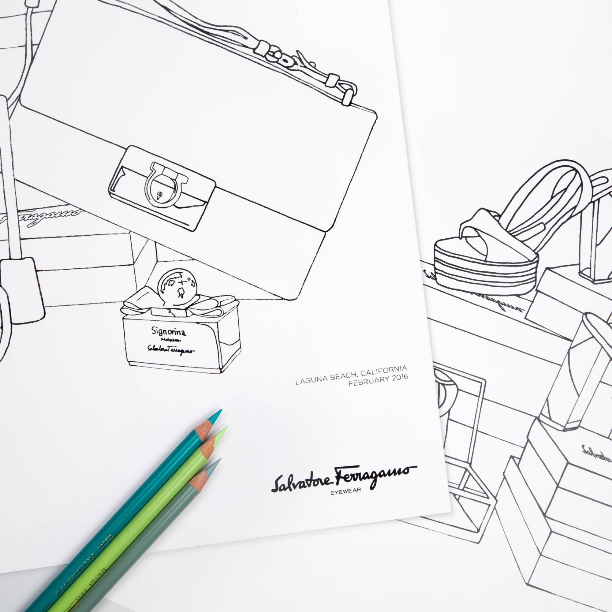 Coloring book illustrations for Salvatore Ferragamo at Market Week, Laguna Beach, California.