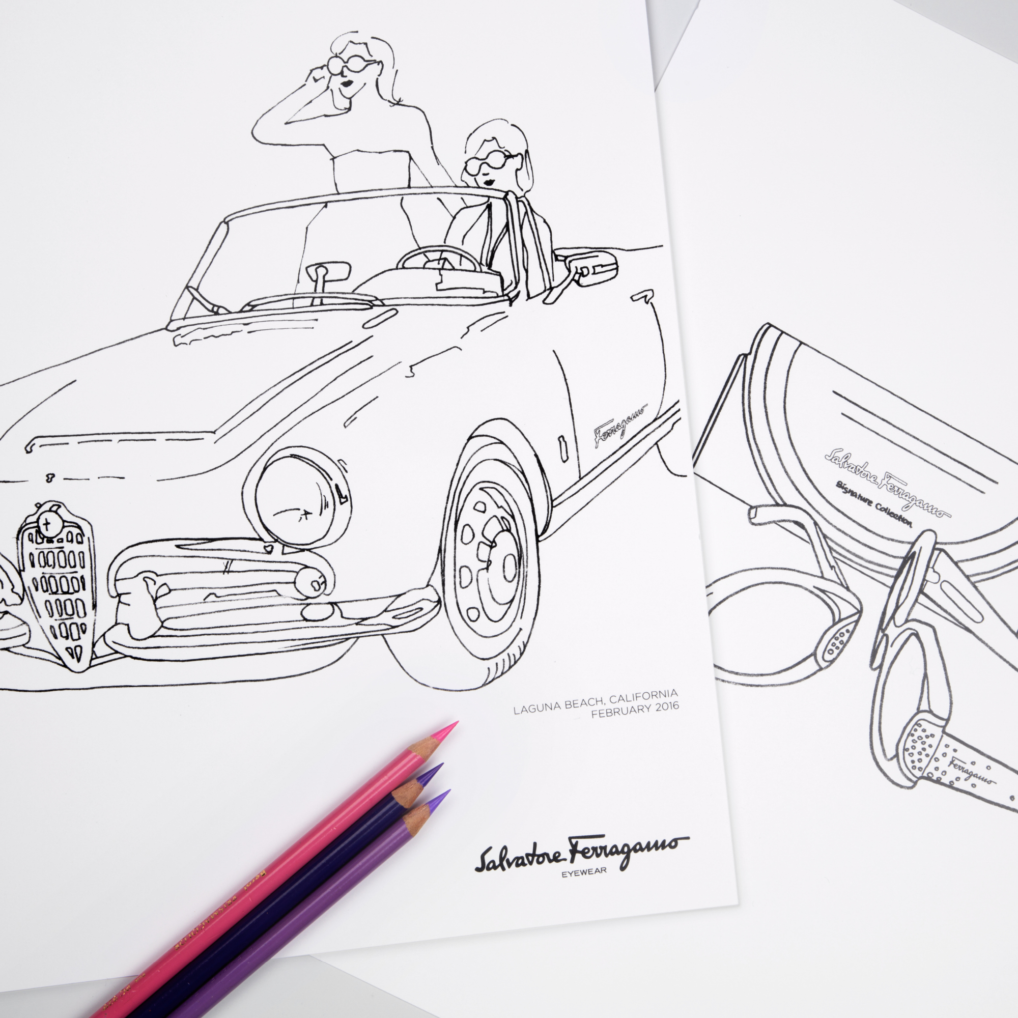 Market week brings together eyewear reps to learn about new product releases and seasonal campaigns. The coloring books were used as a creative brand activation throughout the week to promote the Salvatore Ferragamo eyewear line.