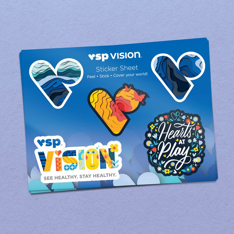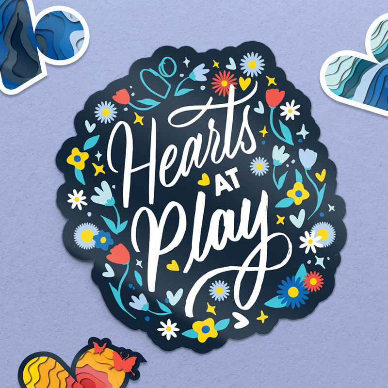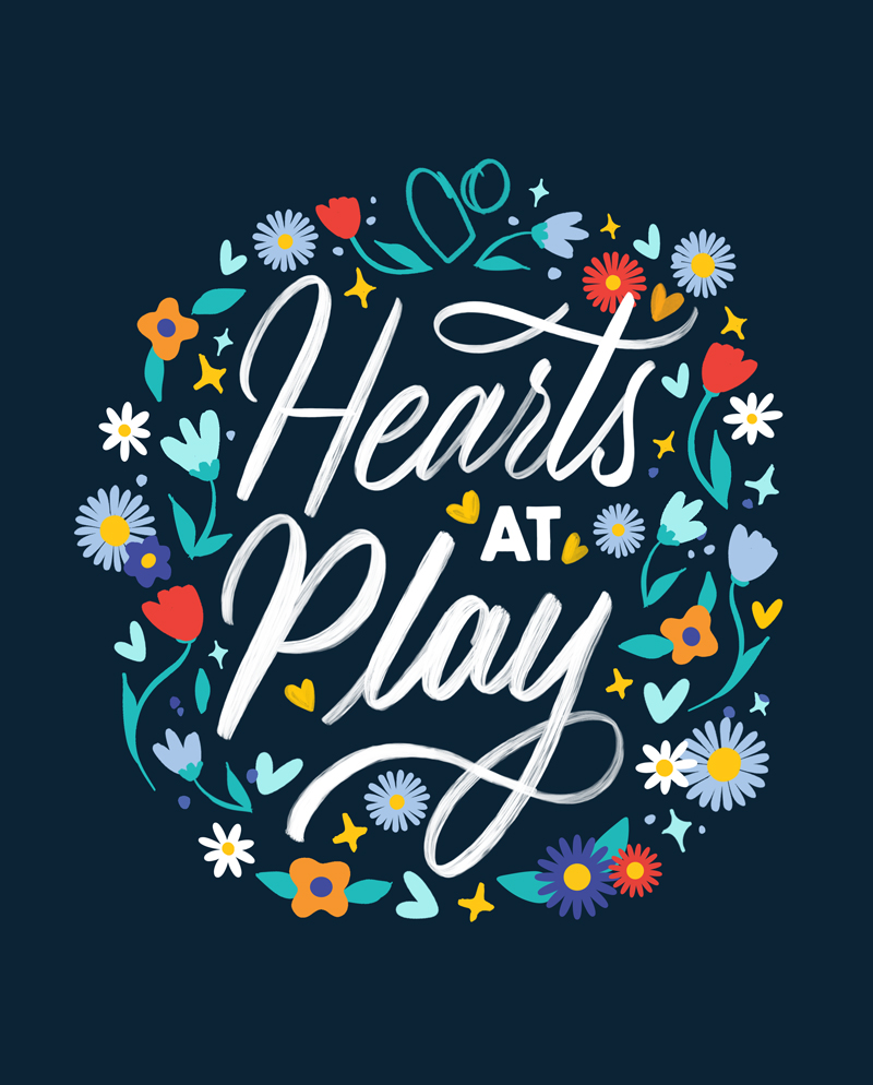 Hearts at Play Illustration Hand Lettering and Illustration for VSP Vision Brand T-Shirt and Sticker designs